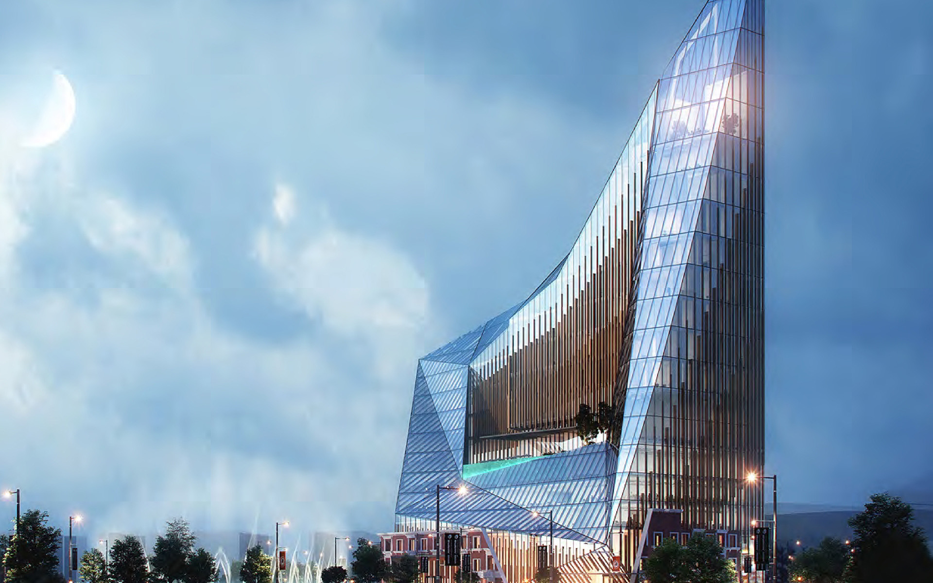 Located in the heart of the Tajik Capital this mixed-use development captures the essence of the surrounding landscape in the form a of a crystalline mountain peak.