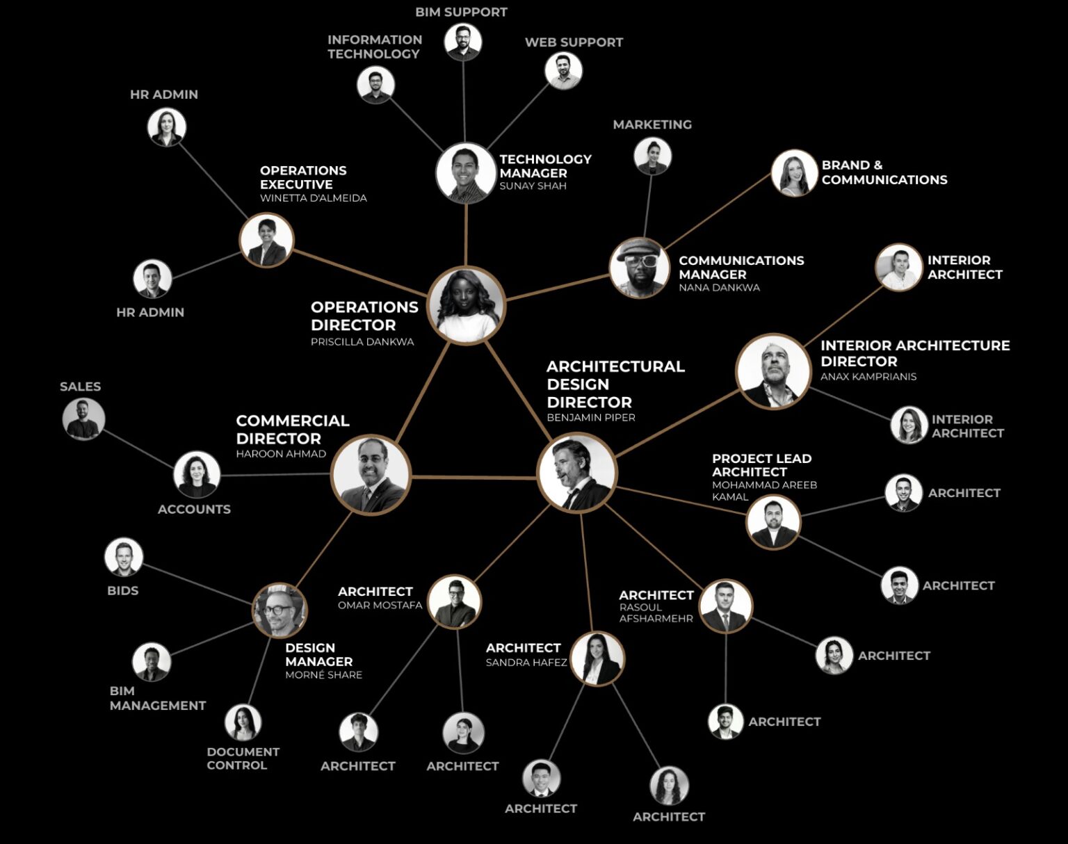From this solid foundation, branches extend outward, each representing a vital aspect of our operations. These branches diverge to support our talented architects, dedicated project managers, and studio support team, ensuring seamless communication and collaboration between all members of the team.
